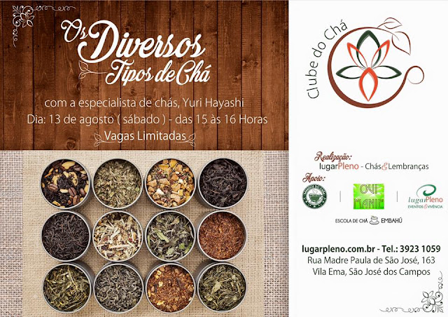 Neste próximo sábado (dia 13 de agosto), teremos workshop e degustação com a consultora e especialista em chás Yuri Hayashi, autora do blog Chá, Arte e Vida – Escola de Chá Embahú.