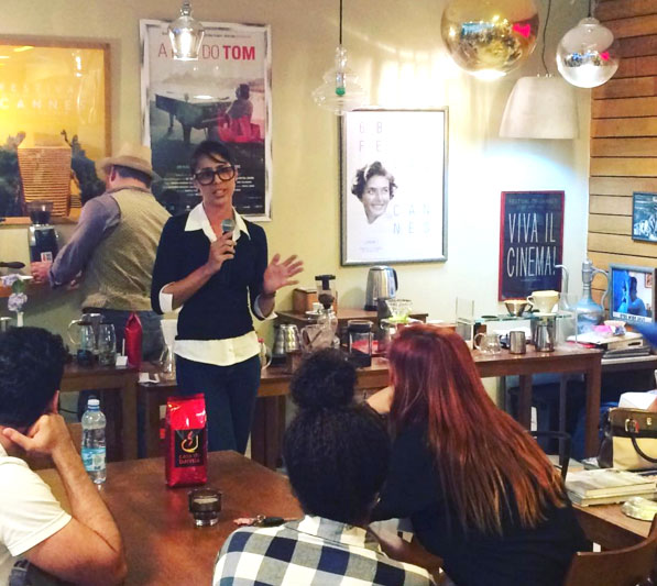 Eu me formei em Processamentos de Dados no 2º grau e já há algum tempo procurava trabalho de carteira assinada na área. No 100º currículo, quase um ano procurando, fui parar em uma agência com vaga para uma cafeteria que iria inaugurar no centro do Rio. Conversando com a moça que estava organizando tudo e que era amiga do proprietário da cafeteria, ela teve uma idéia para me ajudar, disse que eu entrando nesse trabalho poderia ter uma chance de ir para o escritório – feliz, eu aceitei . Entrei e foi amor à primeira vista: olhei para a máquina, para o moinho e não quis mais saber de escritório! Queria saber de aprender sobre a planta, variedades, drinks, fazer desenhos no café, etc. Com meu entusiasmo, a cafeteria pagou meus cursos de barista e hoje é uma das minhas coisas preferidas. Estou há 9 anos trabalhando com café.